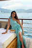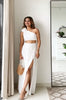 Step into a world of magic with this enchanting ensemble, available in two dreamy colors—icy blue & ivory. Crafted from premium imported satin it ensures luxury & fluidity in every movement. The cropped one-shoulder top is adorned with a handmade flower delicately placed a top. Paired with a high-waisted long skirt that flows gracefully, with a side slit that adds a hint of allure & ease of movement; the discrete pocket on one side is added for functionality. Wear this dreamy silhouette at evening soirées or travel escapades to feel like the protagonist of your own story.