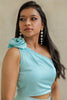 Step into a world of magic with this enchanting ensemble, available in two dreamy colors—icy blue & ivory. Crafted from premium imported satin it ensures luxury & fluidity in every movement. The cropped one-shoulder top is adorned with a handmade flower delicately placed a top. Paired with a high-waisted long skirt that flows gracefully, with a side slit that adds a hint of allure & ease of movement; the discrete pocket on one side is added for functionality. Wear this dreamy silhouette at evening soirées or travel escapades to feel like the protagonist of your own story.