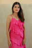 Make a bold statement & embrace your inner goddess with our stellar maxi dress, crafted with premium crepe & adorned with diagonal ruffle detailing, this exquisite ensemble boasts a flattering silhouette that effortlessly complements every body shape with its graceful flow. Featuring adjustable straps & a convenient side zip, it ensures a personalized fit for unparalleled comfort. Whether you're unwinding at a resort or gracing a soirée, this elegant dress is a versatile choice for any occasion.